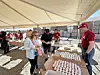 Shauna Kreger, manager of corporate health and safety at The Belden Brick Company, hands out commemorative shirts and other items during the 140th anniversary celebration.Dave Mast