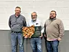 In receiving a local award last year at the Holmes SWCD 2025 annual meeting, Harold Neuenschwander, center, is flanked by Jasson Shumaker, current SWCD board chairman, and Kyle Hanna, current SWCD fiscal agent.Submitted