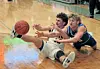 Hiland's Alex Miller and Buckleye Trail's Sammy Brown get after it trying to chase down a loose ball. The Hawks created tons of turnovers and rolled to a 41-point victory to capture the school's ninth district title in the past decade.Dave Mast