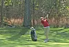 Hiland head coach Austin Kaufman keeps an eye on Grant Bille's second shot on the 16th at NorthStar Country Club, where the Hawks finished third in Division III.Dave Mast