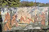 The large mural distinctly depicts the decisions of all