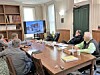Holmes County Airport Authority board members Roc Baker, front left, and Josh Troyer join the Holmes County Commissioners in viewing the new plans for the Holmes County Airport terminal during a recent meeting.