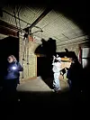Mark Boley, director of the Holmes County Historical Society, offers some insight into the history of the Duncan Building in Killbuck as board member Melissa Patrick records it. With the building hitting the auction block, the HCHS wanted to make some detailed notes and take photos of a building that was once a mainstay for local entertainment. Boley is standing on the stage that was used to present Vaudeville-type live performances in the early 20th century.Dave Mast