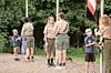 Local Scouts Cheyenne Strait and Michelle Hickling, pictured at center during the flag-raising ceremony at summer Court of Honor, served as camp staff members.Submitted
