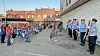 veteran was loudly applauded as they exited the tour bus.