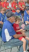 Veteran Rocky Trussel listens intently to Glenn Miller, CEO of Holmes-Wayne Electric Cooperative, during the welcome home ceremony from the Honor Trip to Washington, D.C. Seated on his lap is his grandson Jaxson Kidwell.Dave Mast