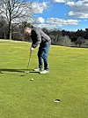 Brent Hofstetter rolls in a putt on the ninth hole at Fire Ridge Golf Course Feb. 20, and thus, the golf streak continues.Dave Mast