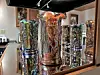 protective glass around the case, mirrors both below and behind the vases, and LED lighting to help the iridescent glass shine, it all came together to
