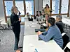 Megan Wilson, marketing director at United Way Wayne & Holmes Counties, chats with a portion of those who attended the second of two community meetings designed to solve the transportation and housing issues in Holmes County.Dave Mast