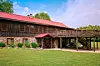 Built on a former winery, Camp Because I Said I Would features their 8,500-square-foot Manor Lodge, which sleeps 35 people and has seven and a half baths. Manor Lodge also includes a kitchen, a sauna, a pair of saloon wet bars, and a game room with a pool table. The 100-foot porch with rockers, a large dining room and 30-by-30 deck make it an attractive place to relax and enjoy. Along with that are lake view and forest cabins with many of the comforts of home.
