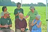 John Woollam, center, is congratulated during a ceremony opening the Brown Family Environmental Center North Trail System on Yauger Road on Saturday. Woollam was instrumental in the purchase of the land for the new trails.