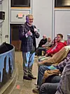 The presentation concluded on a high note, with Tressel leading the audience in a resounding, “Go Bucks!” prompting a standing ovation. As a special tribute, Tressel was presented with an official raccoon pin by Lions Club member Patrick Crow, symbolizing his participation in the evening following the annual raccoon dinner.