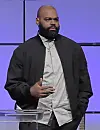 Former NFL star Michael Oher speaks to a large audience during the final day of Tragedy into Triumph, held at Mount Vernon Nazarene University on Wednesday.Submitted