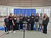 Mount Vernon girls' wrestling team members, Luci Parker, left, Joy Morman, Evelyn Martinez, Renay Davidson (statistician), Mahayley Laverick, Ash Brokaw, Jessie Blas-Perez, Ella Kennedy (statistician), Alivia Zimmerman, Khadija Ndow and Massilyn Ricketts, celebrate at the Findlay Fight Girls Wrestling tournament earlier this season. The team will be hosting its first girls' wrestling invitational on Sunday, Feb. 1, beginning at 10 a.m. at Mount Vernon's Energy Field House.Submitted