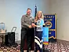 Outgoing Rotary Club President Zach Green, left, hands the gavel to new president Halle Krajenski at a meeting recently.