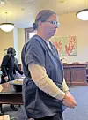 Ruth Miller, 40, of Millersburg is led away to jail following a pre-trial conference in Tuscarawas County Common Pleas Court, where she is facing several charges, including aggravated murder.