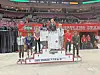Claymont's Dre'Vonn Searcy stands on the awards podium at the Schottenstein Center in Columbus after finishing seventh in the state in Division II at 138 pounds.Claymont Wrestling