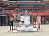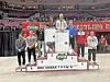 Claymont sophomore Kamden Stout stands in the second position on the awards podium at the state wrestling tournament. Stout had to default early in the championship match with a knee injury.Claymont Wrestling