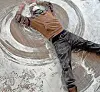 A volunteer takes a break from renovations at Built on Stone to make a drywall dust angel.