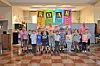 Wendy Neading’s third grade class, Principal Jake Love get their picture taken with Al Ulman, The Respect Guy, after an assembly.