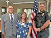 Sgt. Jeff S. Lay, left, Diane Lay, Strasburg Police Chief Randy Haugh at the Strasburg council meeting.