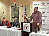 Tyler Bates,Strasburg head coach, takes his turn at the podium as the eight other Tuscarawas County girls basketball coaches await their turn to share about their hopes and dreams from the upcoming season.Dave Mast