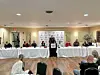 Dover girls' head basketball coach Kyle Dummermuth addresses the crowd during the second annual Tuscarawas County Girls High School Basketball Preview Night Nov. 3 at the Tuscarawas County Senior Center in New PhiladelphiaDave Mast
