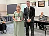 Nancy Raber, Tuscarawas Valley Senior Center site manager received the Trojan Pride Award from TV Superintendent Derek Varansky.