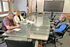 Commissioners Mitch Pace, left, and Kristin Zemis discuss a permanent home for the Tuscarawas Valley Farmers Market with Mark McKenzie, chairman of the group that runs the market.