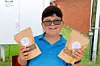 Theo Stocker, 10, of Dennison with the granola he made to sell at the farmers market.Teri Stein