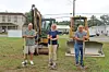 Larry Klein, left, and Keith Frey, right, Wayne Township trustees, and Lisa Troyer, fiscal officer, break ground for the fire department addition.